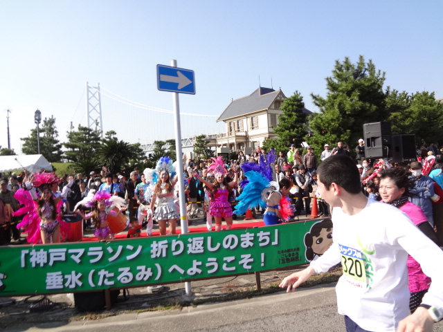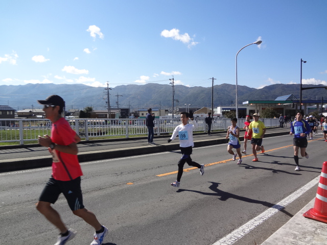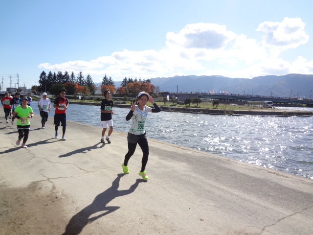3.5km過ぎ、諏訪湖周回に入る辺りでようやく発見&応援できました。